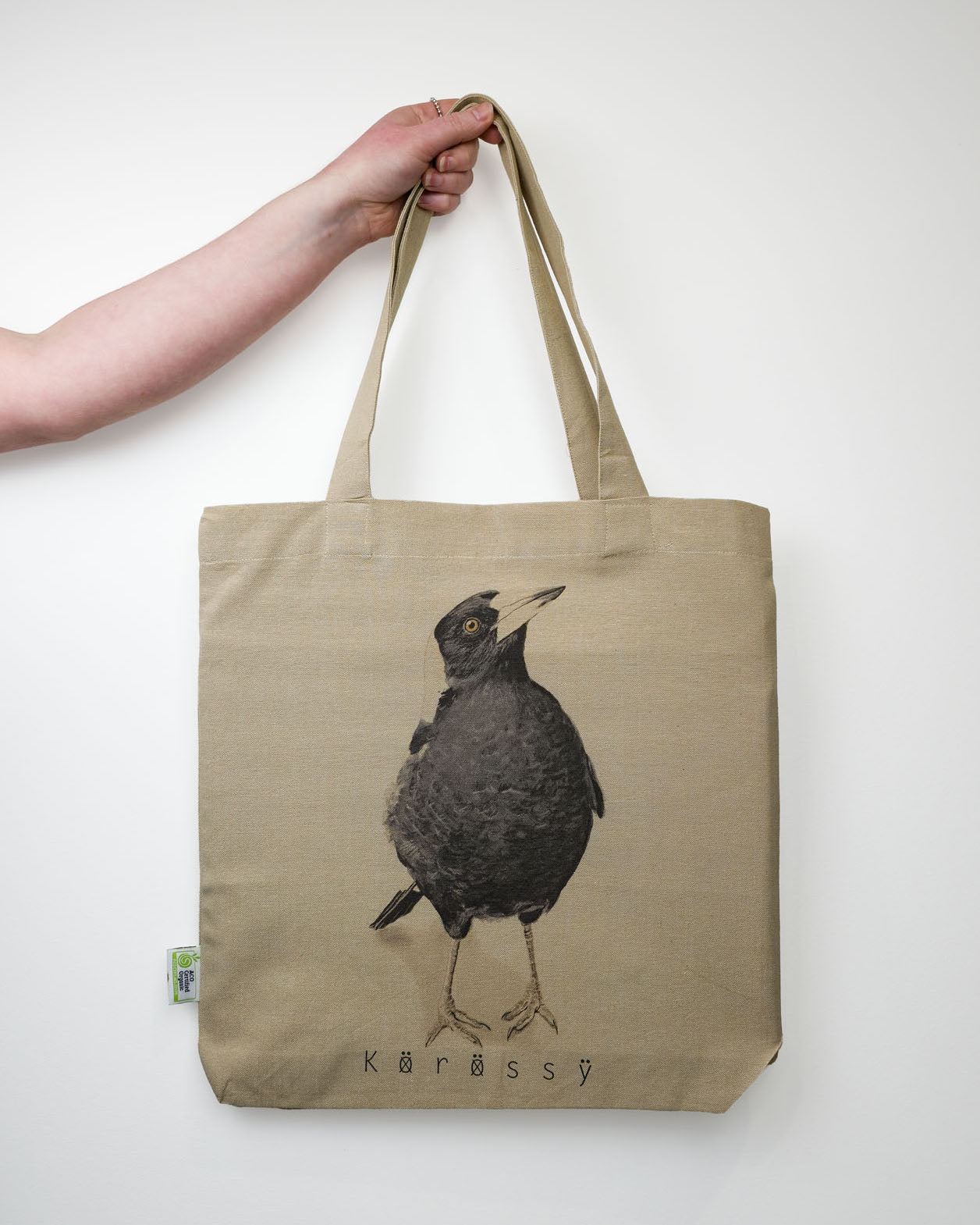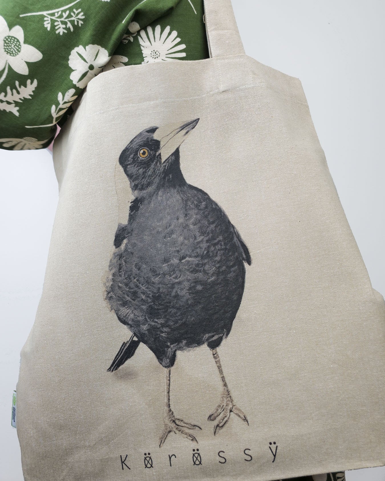 Carry a piece of Australian wildlife with you with this Jackie the Magpie tote bag, featuring stunning watercolour realism artwork by Kat Korossy. Ideal for shopping or everyday use.