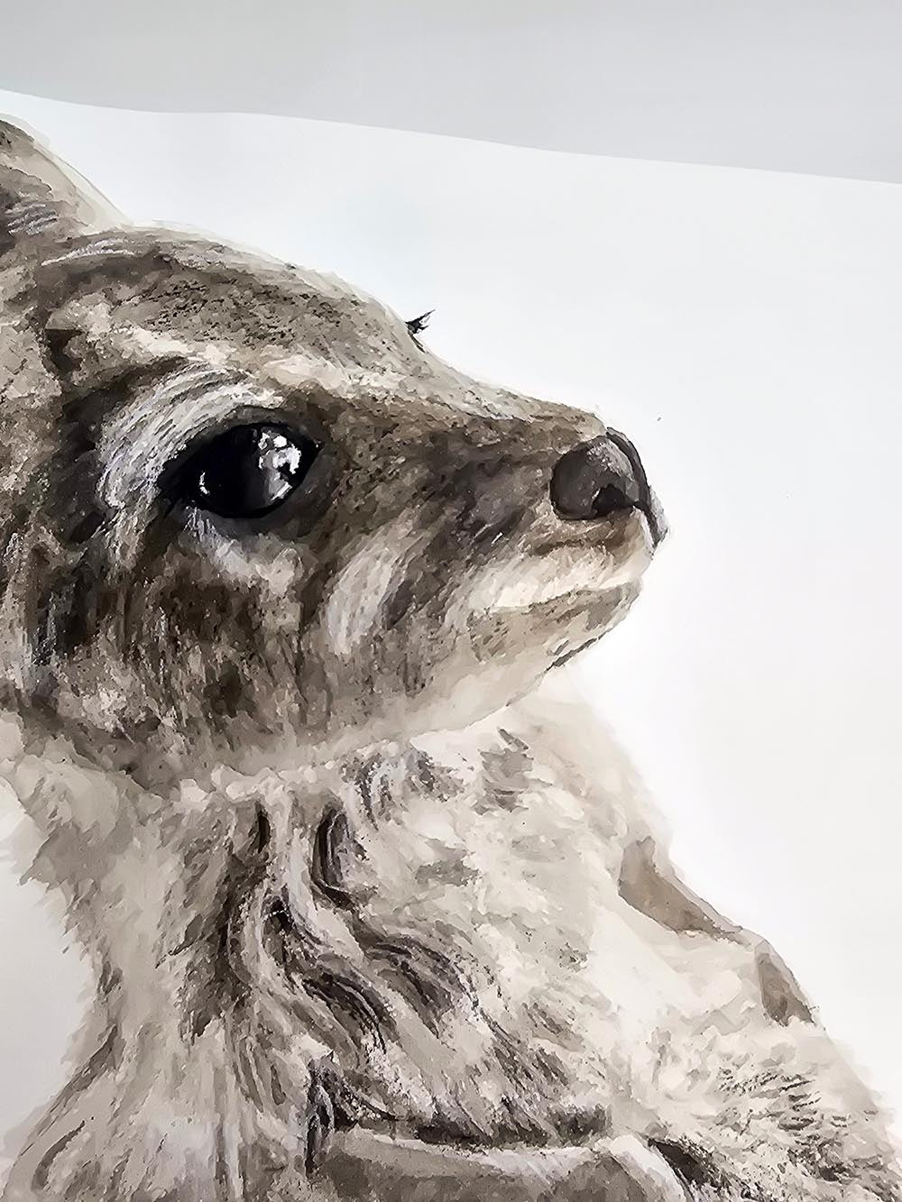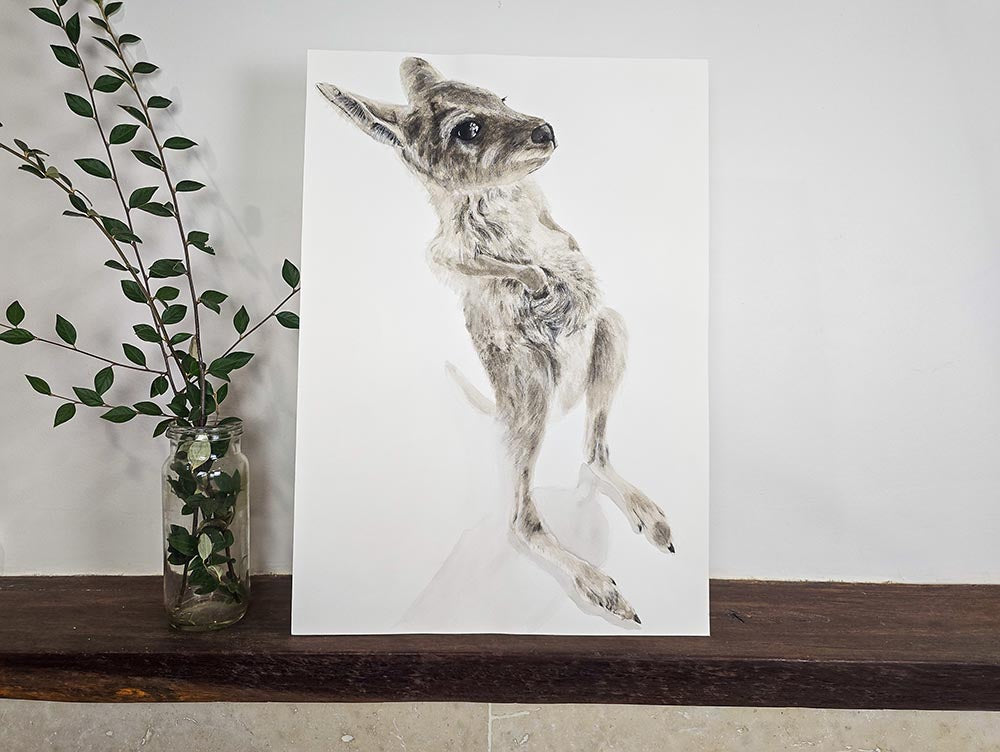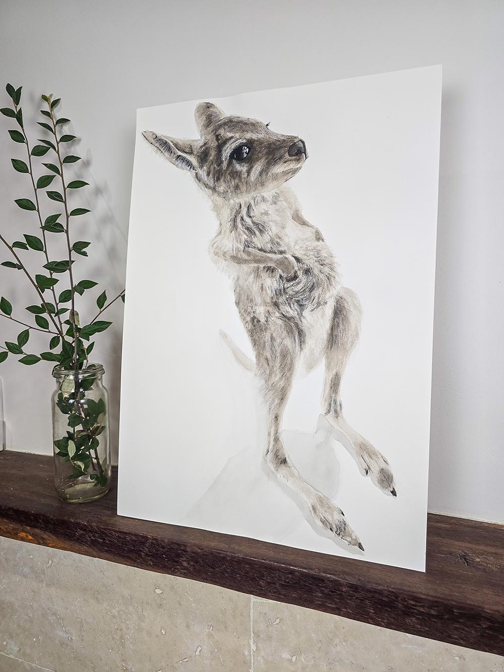 Meet Nugget, the adorable joey, in a captivating realism watercolour artwork by Kat Korossy.