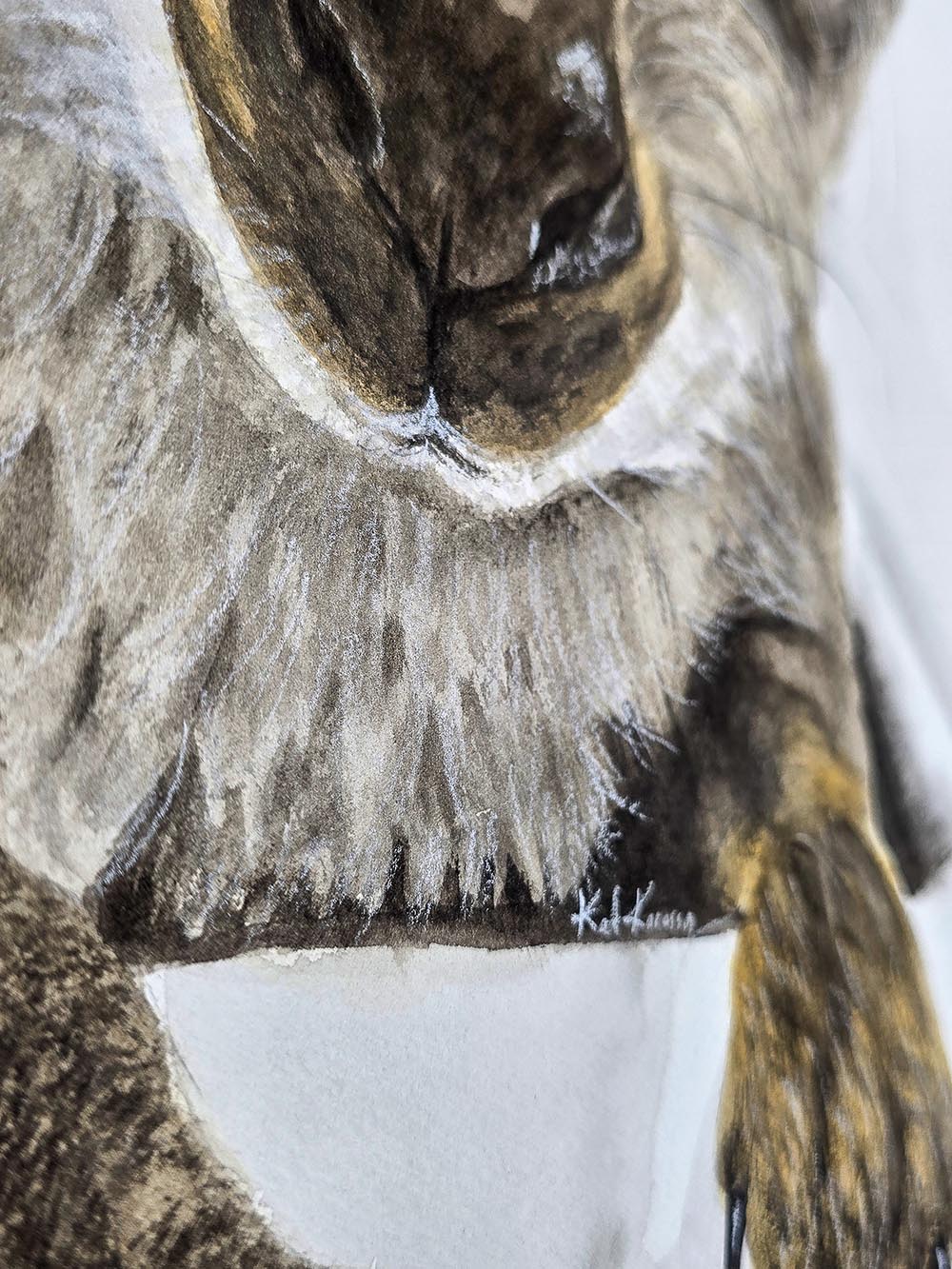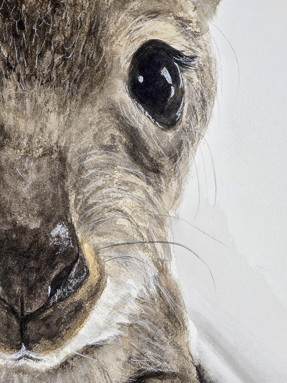 Meet Nugget, the adorable joey, in a captivating realism watercolour artwork by Kat Korossy.