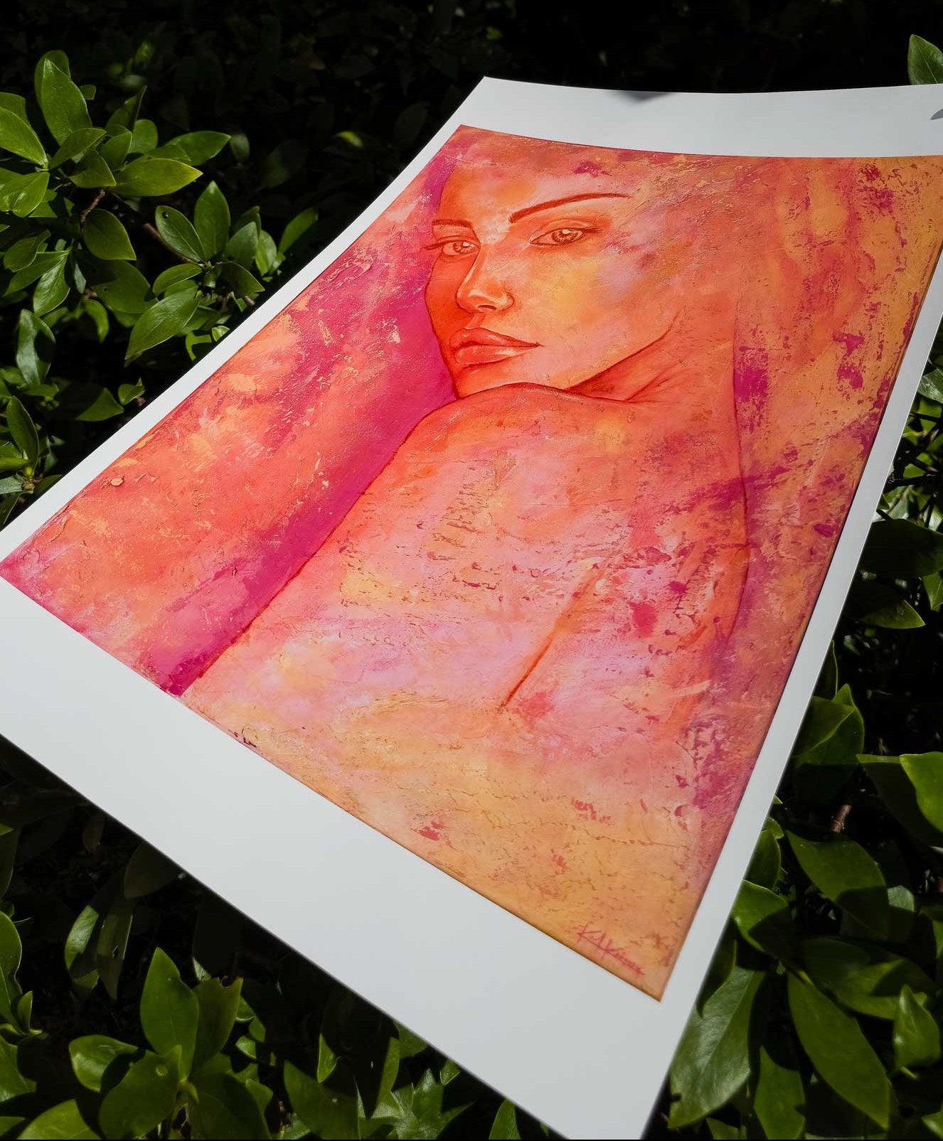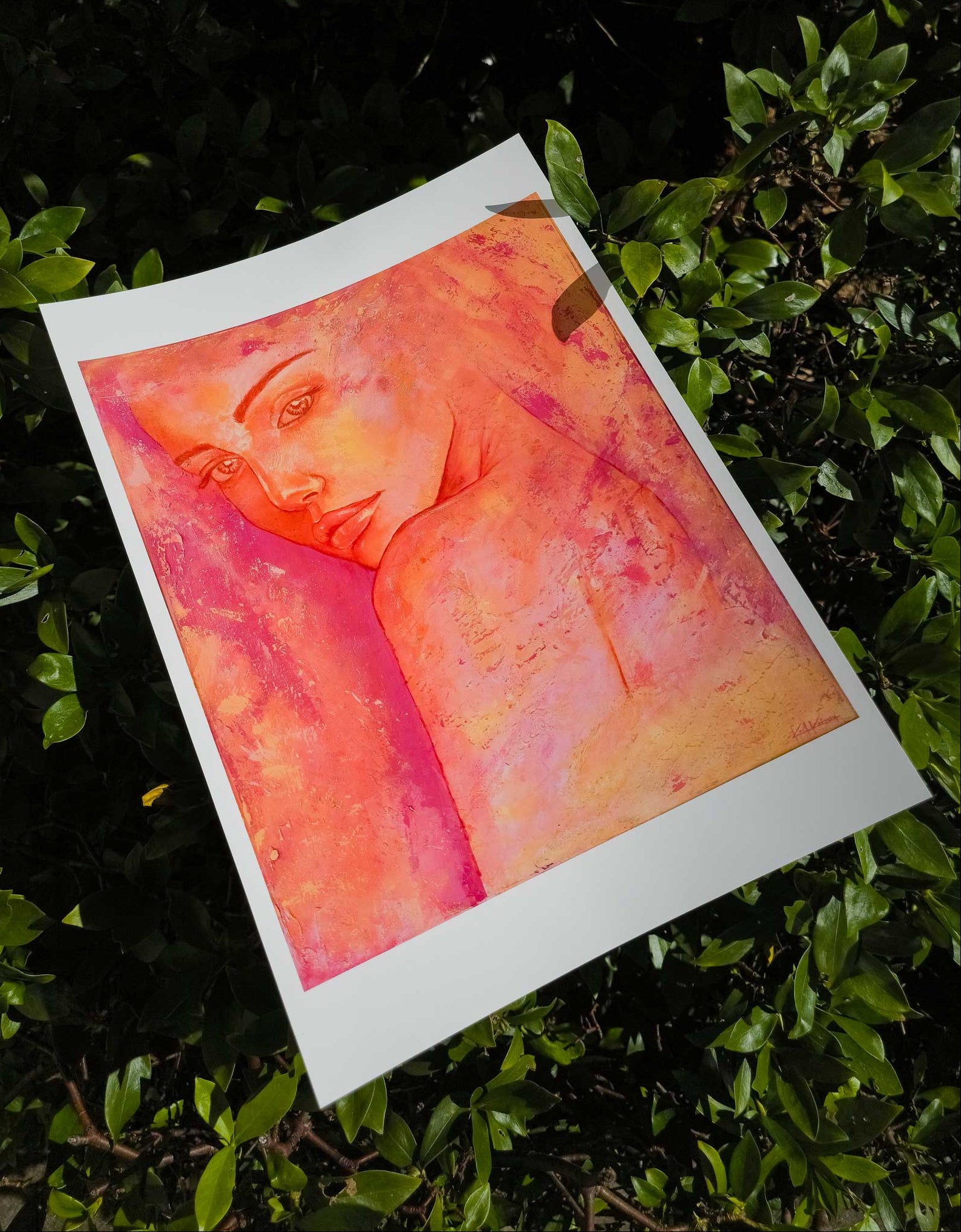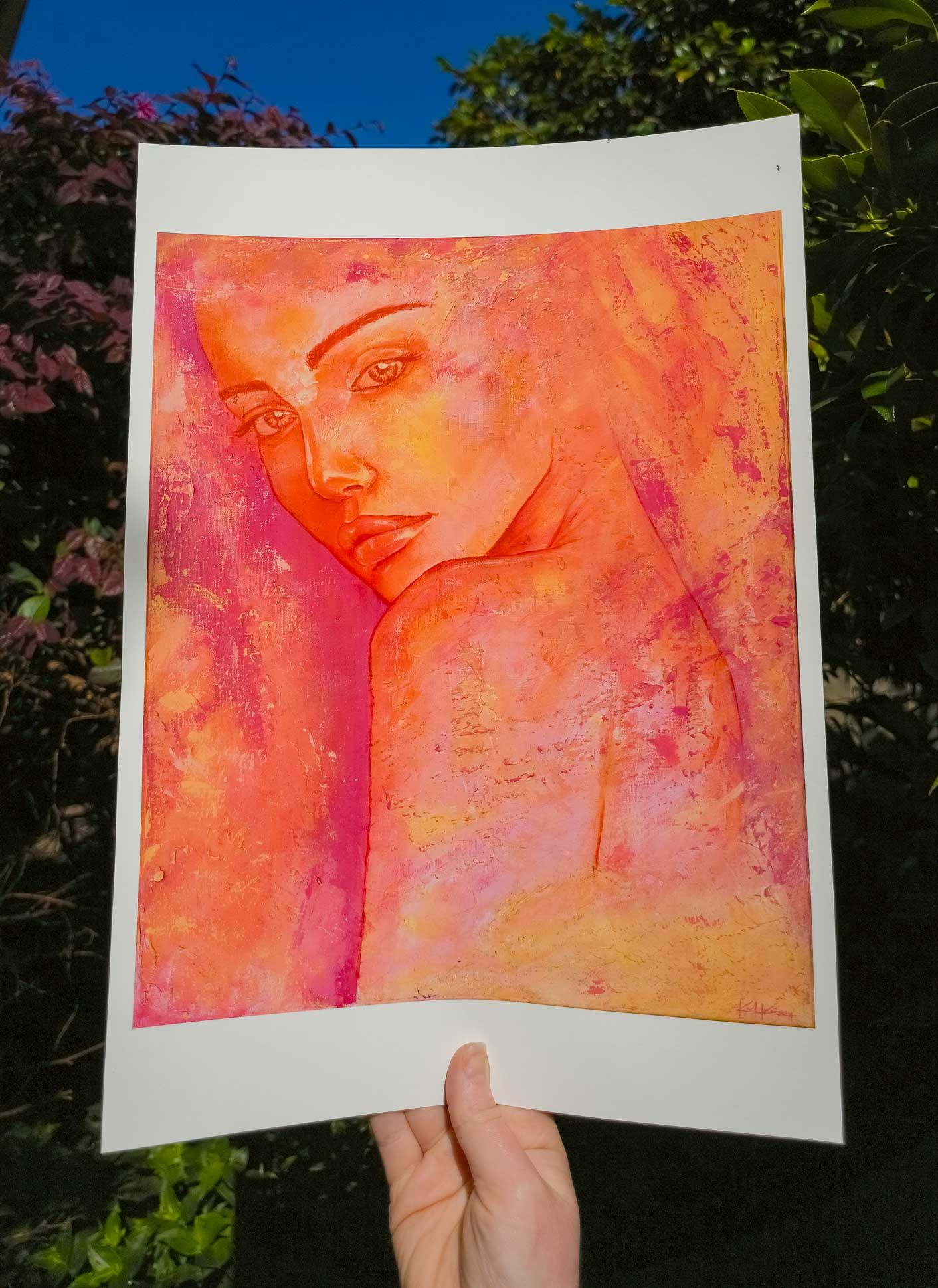 With the purpose of retaining every nuance of the original painting. This giclee print is crafted on weighty cotton rag with a smooth matte finish, created using eight archival pigment inks known to hold colour, depth, and fine details. Resulting in a museum-grade reproduction. True to colour, archival quality, and straight from the artist's studio to your home.